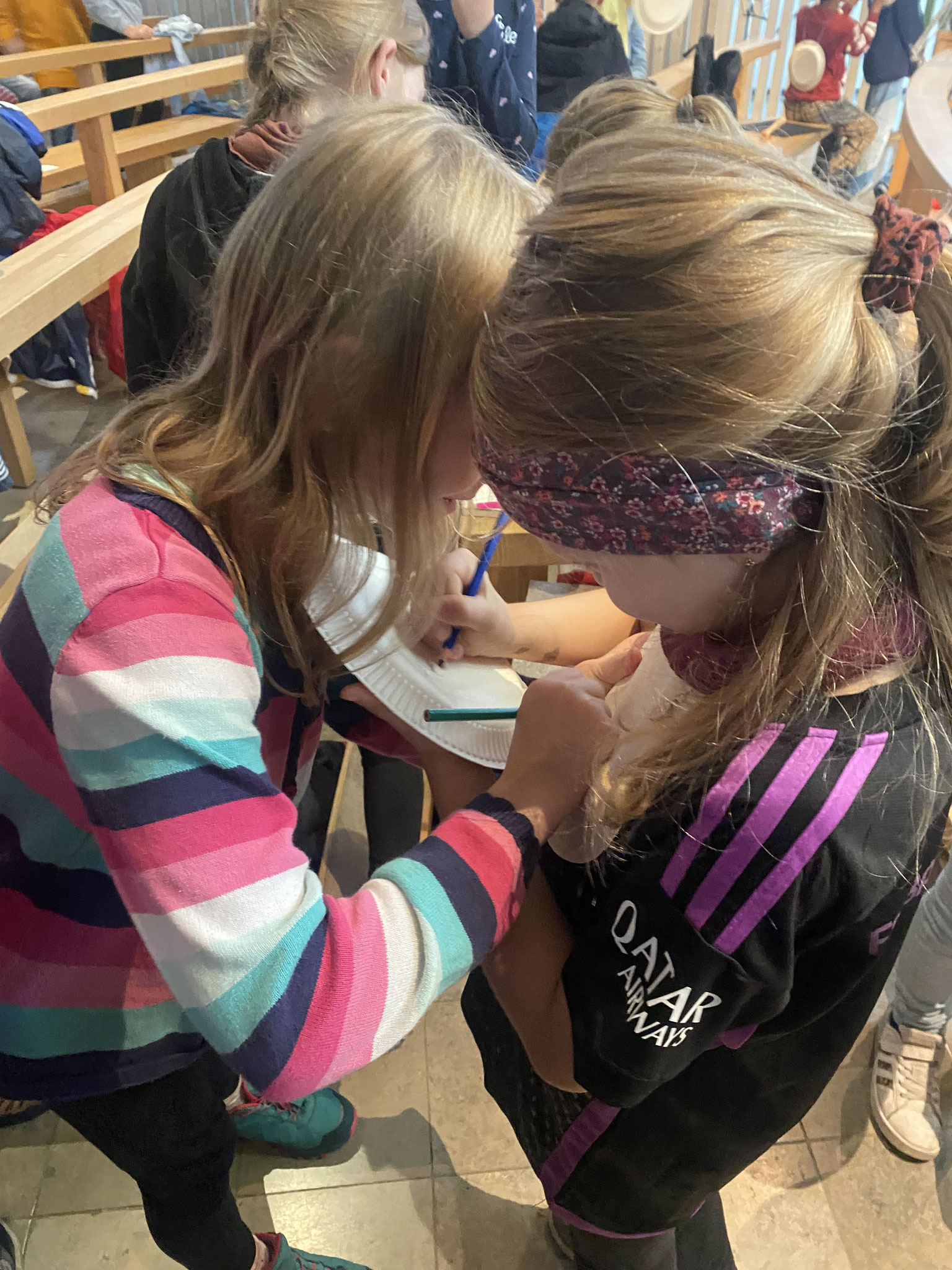 Resi zeigte: Wie ein Schildkrötenpanzer Schutz und Stärke gibt, so kann auch jeder Mensch lernen, sich selbst zu stärken. Passend dazu gestalteten die Kinder symbolische „Schutzpanzer“ aus Papptellern, auf die ihre Mitschülerinnen und Mitschüler liebevolle und stärkende Worte schrieben – ein schönes Zeichen des Zusammenhalts und der Wertschätzung.